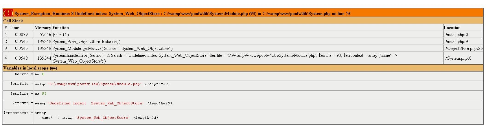 Cette extension personnalise les messages d'erreur en y ajoutant toute la pile des appels de fonctions et de classes. De plus elle permet d'y ajouter des informations sur la mémoire ou sur l'état des variables :p ... Exemple :