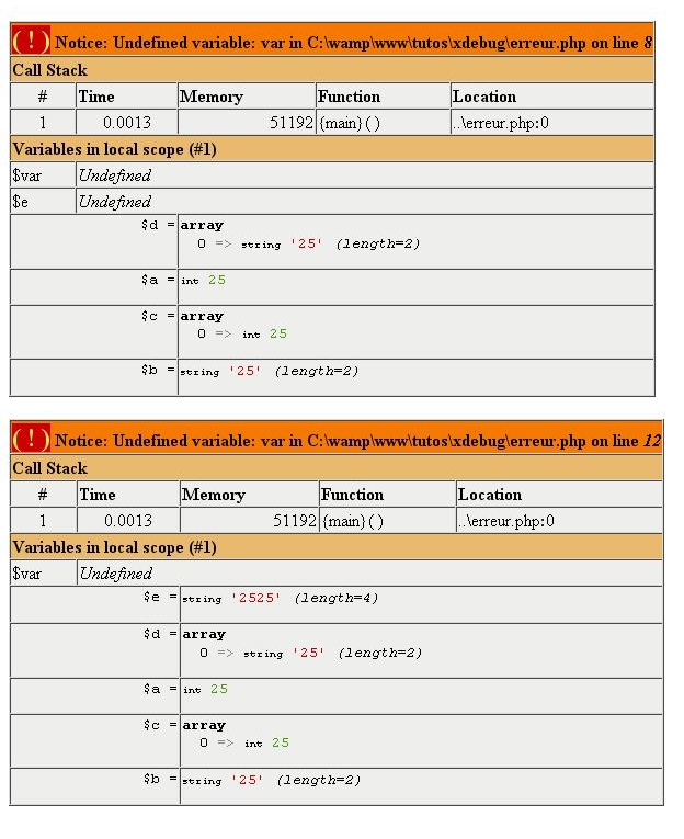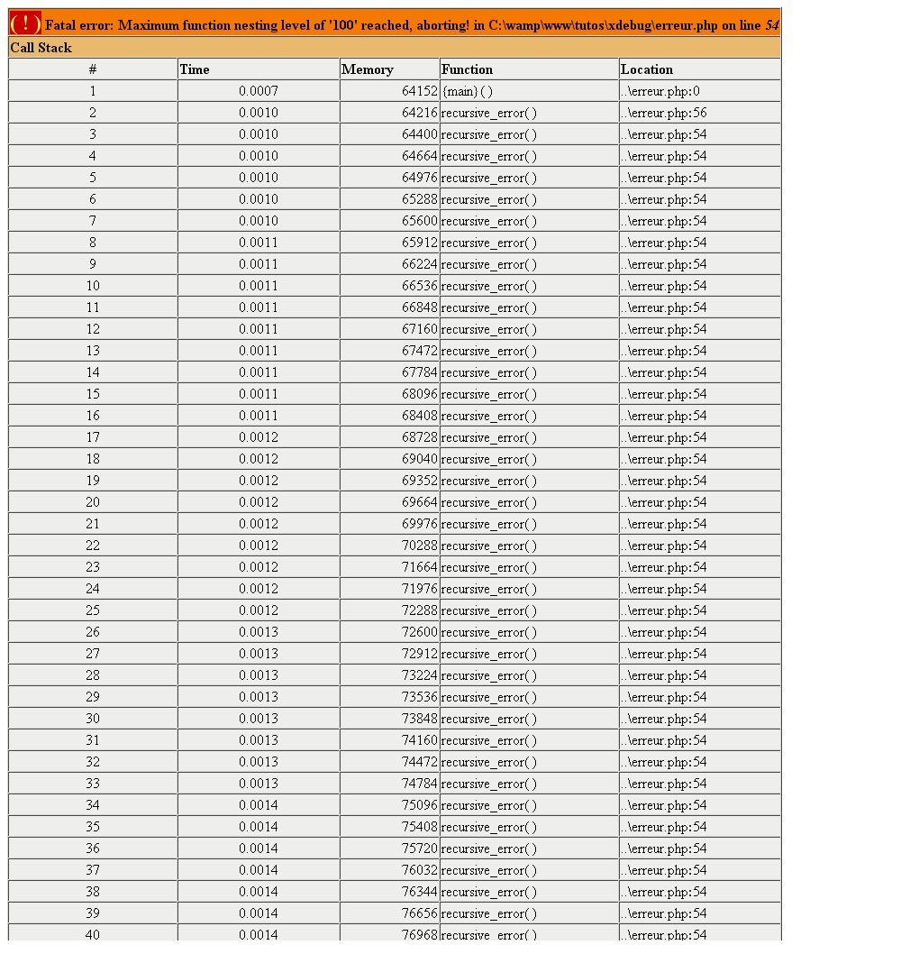 Illustrations : Avec Xdebug chargé dans le php.ini :