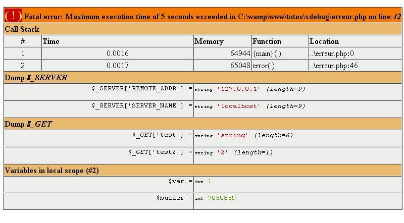 Fatal error: Maximum execution time of 5 seconds exceeded in C:\wamp\www utos\xdebug\erreur.php on line 42