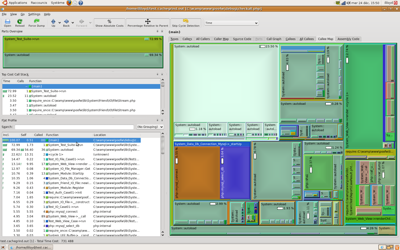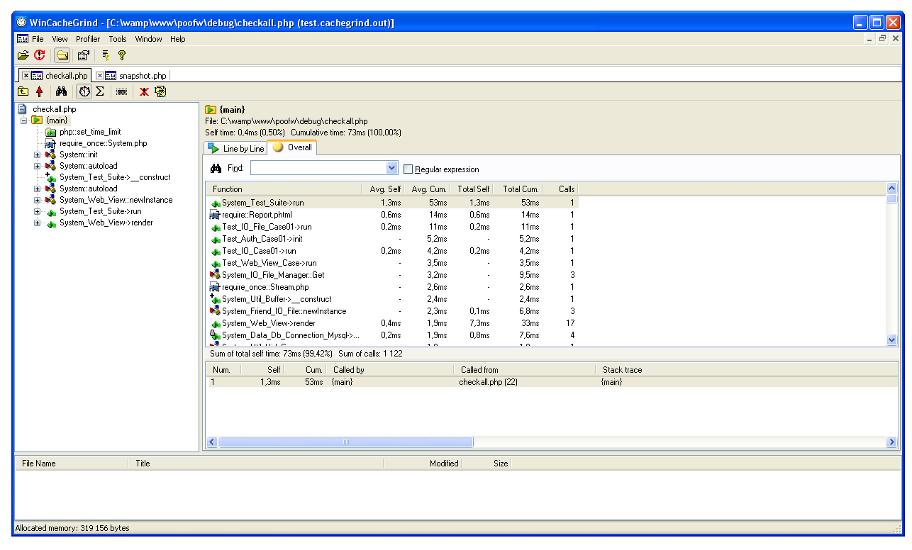 Voici une image du même fichier de profiling que ci-dessus avec WinCacheGrind :