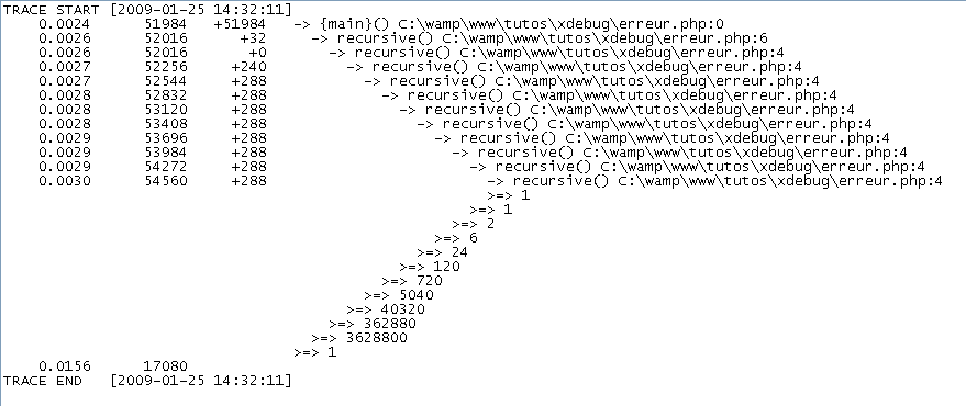 Cet exemple me permet de parler d'une autre particularité de Xdebug : les traces...