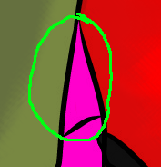 Second type d'erreurs : les oublis. - Lorsque l'on oubli de colorier une zone : Vous en connaissez déjà le remède, bien que cela puisse parfois être peu pratique, il faut faire la colo de cette zone.