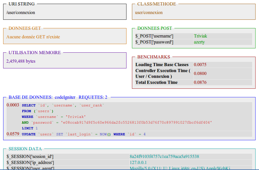 Cela lui permet donc d'être doublement rapide. D'une part, sur le temps d'apprentissage du framework : vous verrez que vous vous sentirez très vite à l'aise. D'autre part, sur le temps de génération de votre page. Autant vous le dire tout de suite, CodeIgniter se retrouve souvent en très bonne position dans les benchmarks (je ne pourrai pas vous en dire plus sur ce point, au risque de ne plus être objectif).