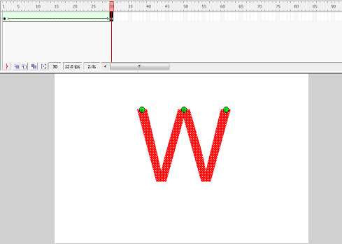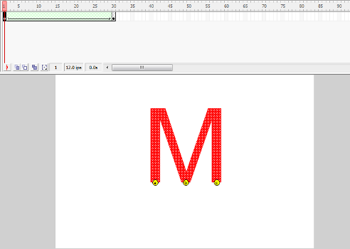 Les points de repère servent à choisir quelle partie du premier objet deviendra telle partie du second objet. Pour créer un point de repère, placez vous à la première image de l’interpolation (oui, il faut que vous ayez déjà créé une interpolation de forme ;) ) et allez dans le menu "Modification > Forme > Ajouter les repères de formes" (ou faites Ctrl+Maj+H). Vous verrez normalement un point rouge avec marqué « a » à l’intérieur. Ce point se situe aussi à la dernière image de l’interpolation. Placez-les là où vous voulez pour qu’une partie de l’objet se transforme en une autre :