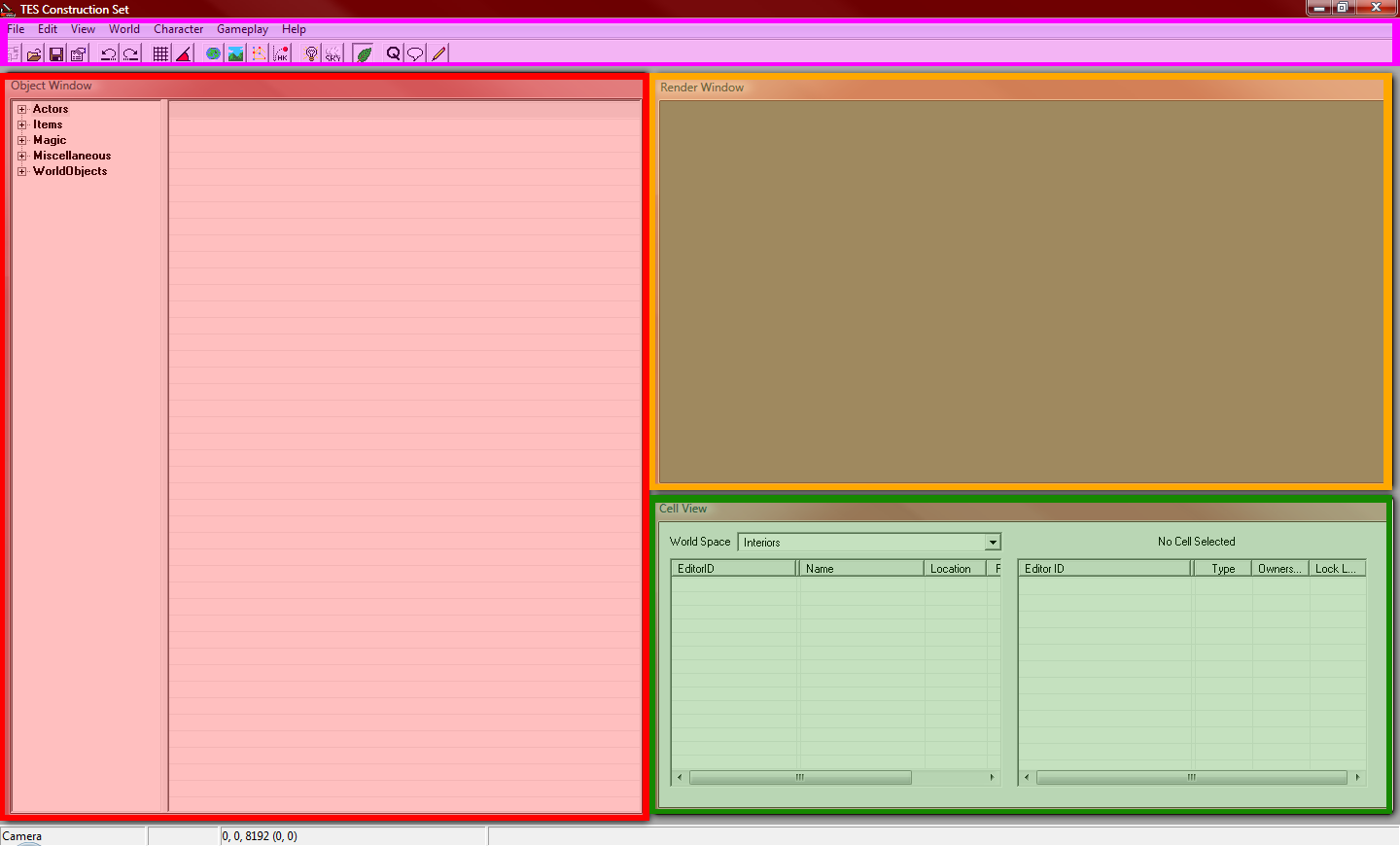 Le jeu d'Oblivion est extrêmement grand. Imaginez que pour placer des éléments, le logiciel devrait charger toute la carte d'un coup ! Évidemment non. En fait, la carte est divisée en cellules.