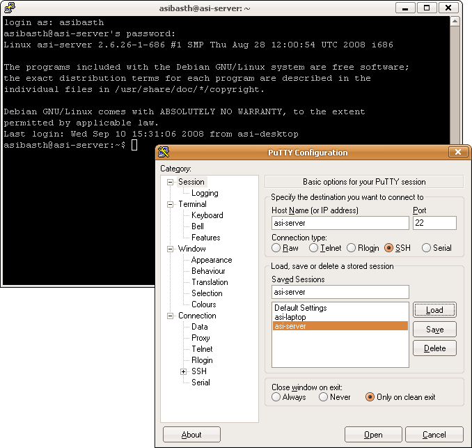 Si vous avez une machine capable d'utiliser un serveur SVN, elle doit être aussi en mesure de faire tourner un client SSH, si vous êtes sous Linux la commande ssh sera de rigueur ; si vous êtes sous Windows, PuTTY ou Poderosa vous seront bien utiles.