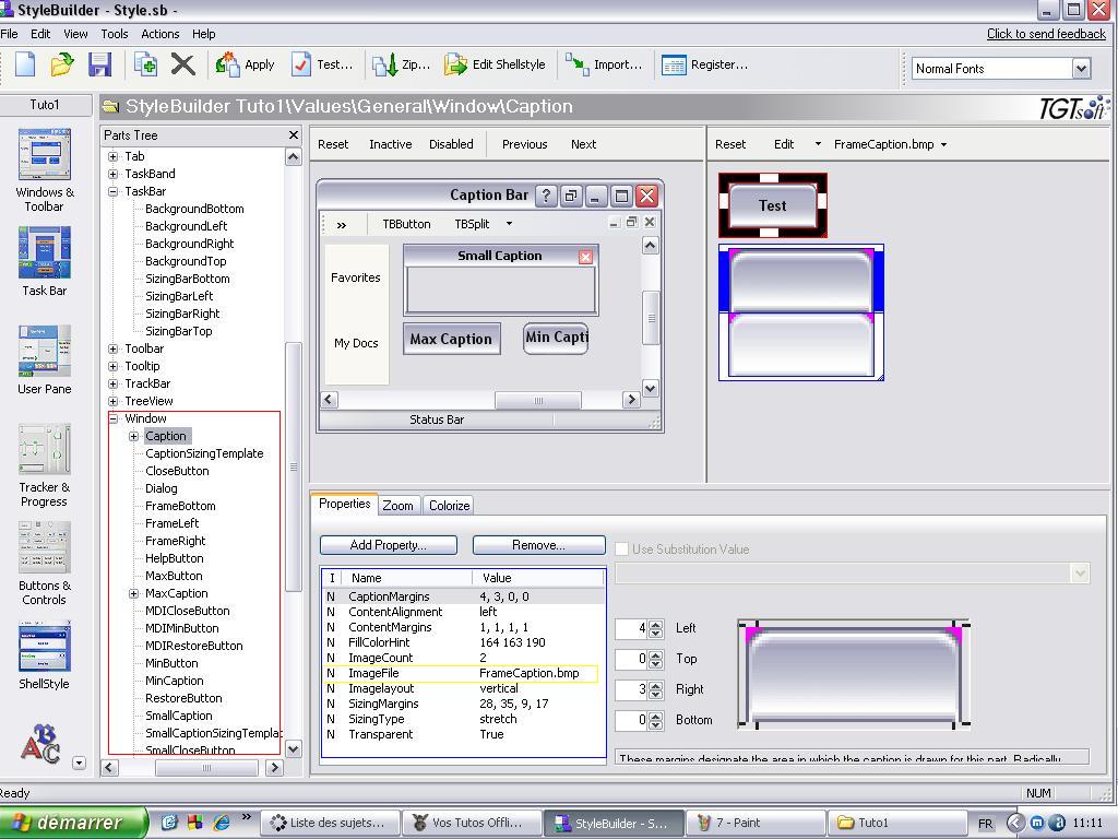 Pour commencer, vous allez modifier l'image de l'élément Caption (framecaption.bmp) dans le dossier du style grâce à votre éditeur d'images.