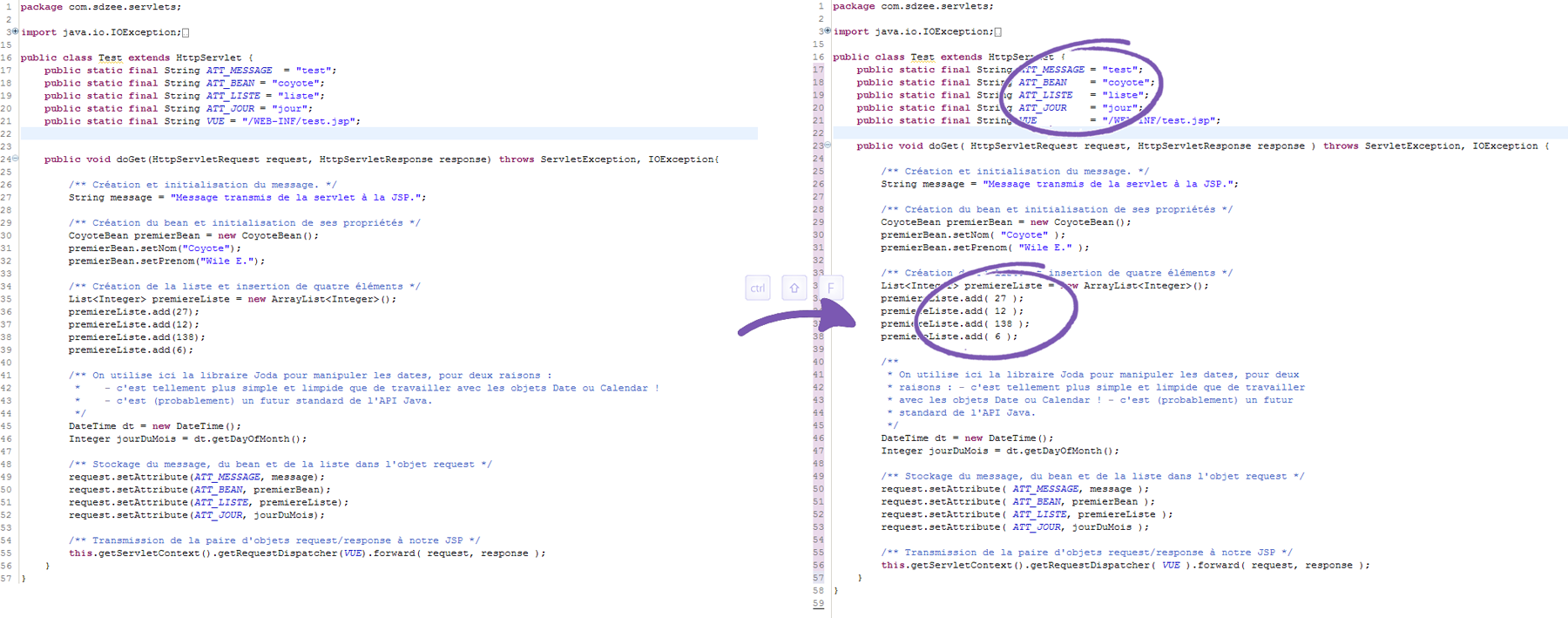 Concrètement, cela signifie que toutes les variables d'instance ne seront initialisées qu'une seule fois, lors de l'instanciation de la servlet. Les variables locales quant à elles sembleront réinitialisées à chaque nouvel appel. Voilà pourquoi la variable compteur a conservé sa valeur entre deux appels, alors que la variable compteurLocal a bien été réinitialisée.