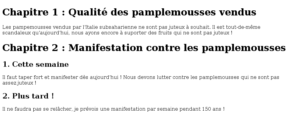 Maintenant que les compteurs n'ont plus le moindre secret pour vous, on peut essayer de résoudre notre petit problème. Avec le code HTML donné précédemment, voici le résultat que nous souhaitons obtenir. C'est vrai que ça peut paraître dur au premier abord, mais avec un peu de réflexion, vous y arriverez. N'hésitez évidemment pas à relire la partie "Fonctionnement d'un compteur".