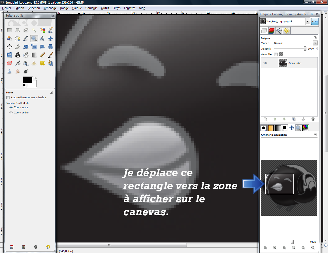 1:Fenêtre principale : c'est ici que tout se passe. Votre image apparaitra ici et c'est là que vous travaillerez la plupart du temps. C'est pour cela que c'est aussi la plus grande. Elle est là pour accueillir votre travail et le canevas, dont nous reparlerons plus tard.