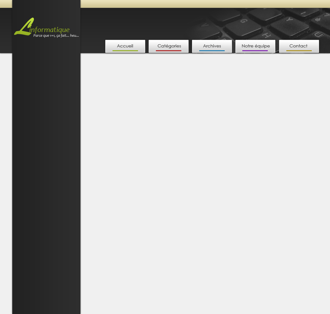 Avant de commencer, il nous faudra un logo que nous serons certains de pouvoir adapter à la bannière. Pour le réaliser, je me suis essentiellement concentré sur deux critères : la simplicité et l'esthétique. Aucun des graphismes ne laissera supposer qu'il s'agit d'un site d'informatique. Pourquoi ce choix ? Tout simplement parce que le nom du site est suffisamment évocateur à lui tout seul. En allant sur "Linformatique.com", on devine assez facilement que ce site traitera d'informatique.
