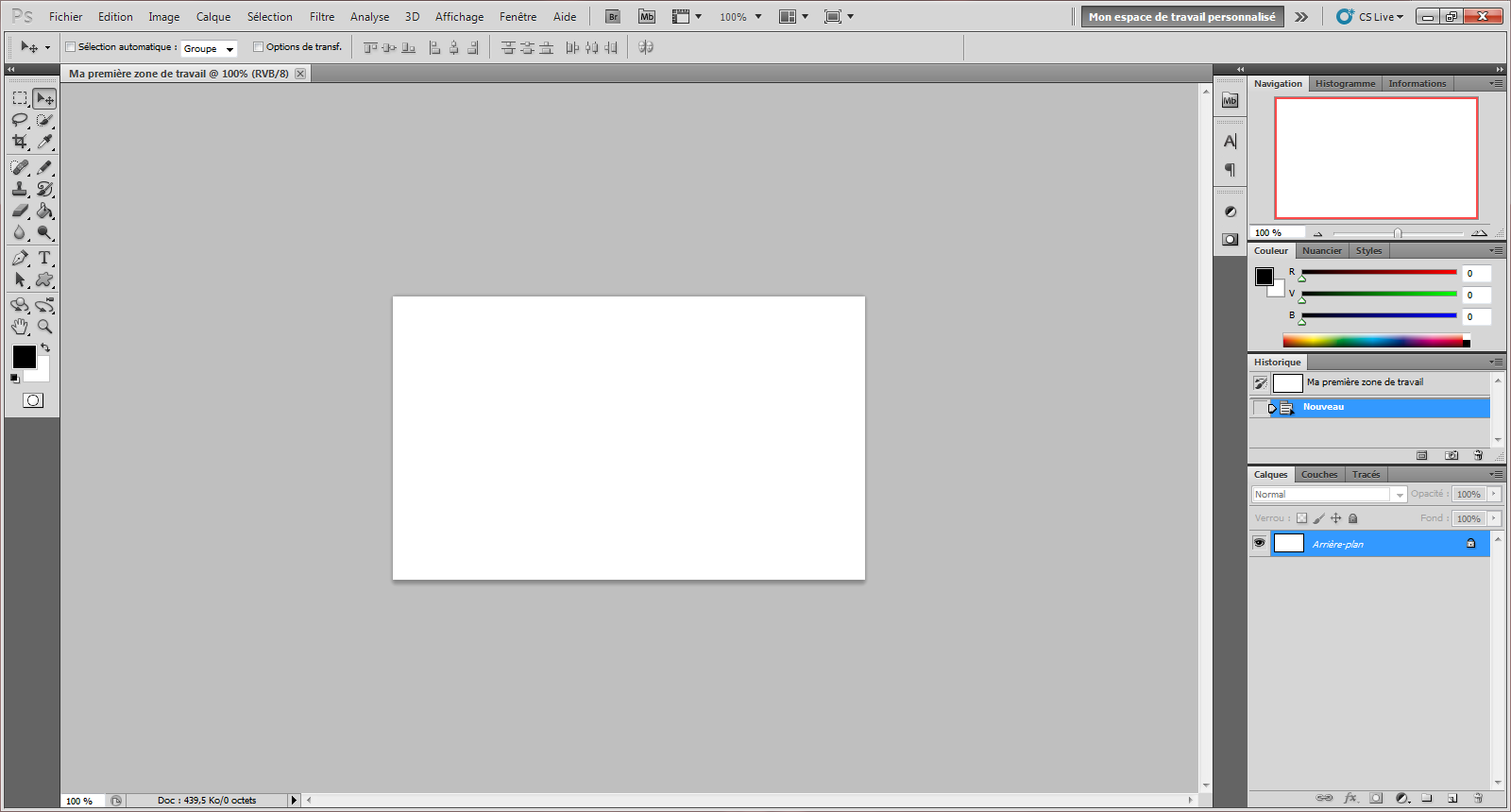 Le moins que l'on puisse dire, c'est qu'il était très simple. Mais alors vraiment très simple, surtout quand on compare cet espace de travail avec celui que l'on connait de nos jours, celui que vous trouverez en téléchargeant la version CS5 du logiciel :