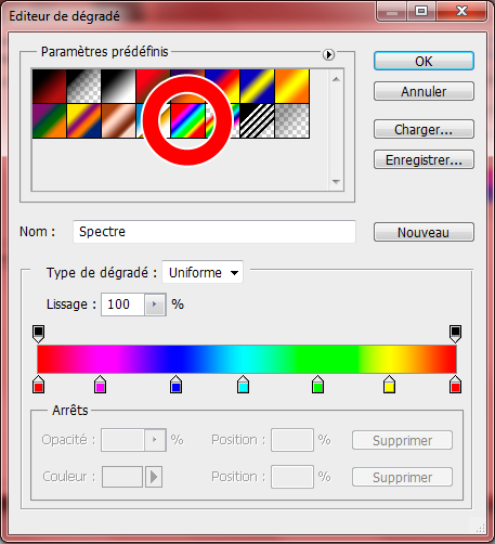 Du côté de la stylisation, je réutilise le dégradé de la bannière en prenant soin, cette fois-ci, de modifier l'angle à 0° pour que la transition s'effectue de gauche à droite, et non plus de haut en bas.