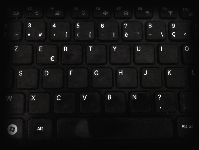Il fallait ensuite que je crée une ambiance. Je devais trouver quelque chose pour que la bannière dégage une atmosphère en rapport avec l'informatique, mais toujours sans trop en faire. J'ai été amené à faire des essais et ai finalement été séduit par l'idée d'intégrer l'image d'un clavier d'ordinateur. Ni une, ni deux, j'ai pris en photo le clavier de mon ordinateur portable à l'aide de mon téléphone et l'ai transférée pour enfin l'ouvrir sur Photoshop. La suite n'est pas plus compliquée : j'ai tout d'abord réduit la photo pour la découper et l'intégrer dans la bannière correctement. Ensuite, j'ai modifié le mode de fusion du calque de la photo pour le passer en "Luminosité" et enfin, à l'aide de l'outil Rectangle de sélection et d'un contour progressif de 30px, j'ai découpé une partie du bord gauche de l'image pour la faire fondre avec la bannière. Pour finir, j'ai réduit l'opacité du calque à 31%.