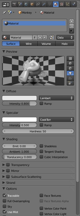 La gestion des matériaux diffère de celle du moteur interne. On dispose maintenant de matériaux pré-réglés que l'on peut ajuster et mélanger entre eux.