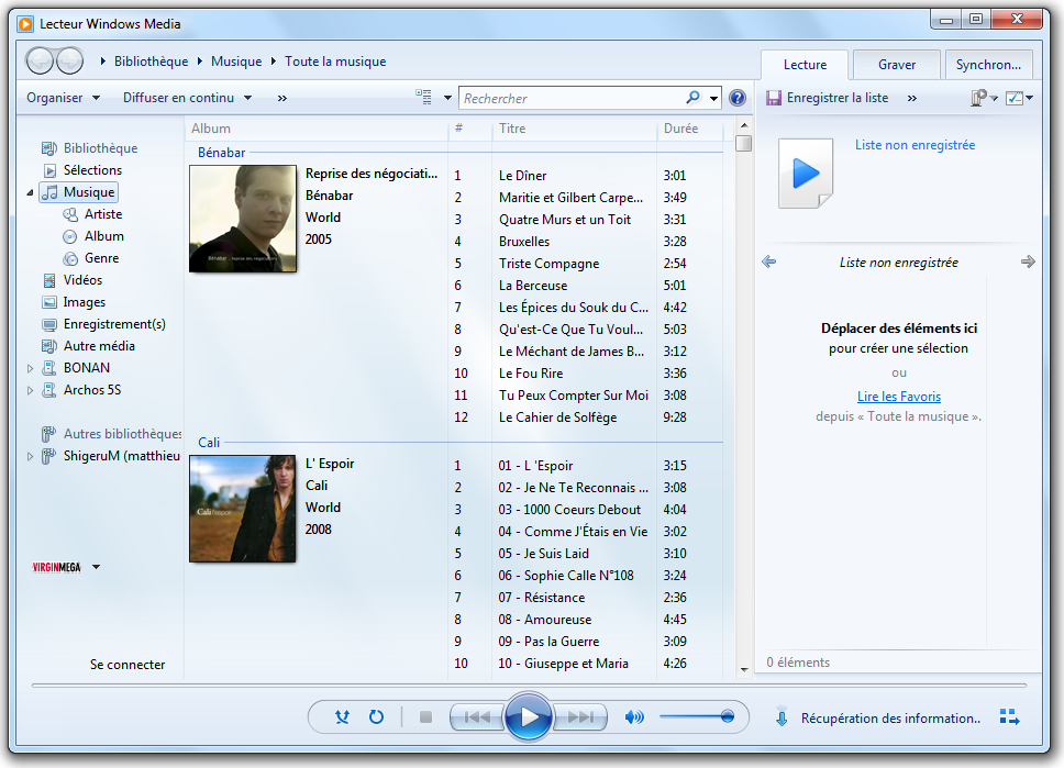 Ordinateur : ce lien sert à accéder aux différents lecteurs de votre ordinateur (disque dur, lecteur CD/DVD, carte mémoire d'appareil photos, etc.).