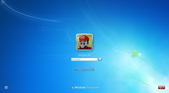C'est la page de choix de l'utilisateur. Nous y reviendrons plus en détail dans un prochain chapitre mais sachez que Windows est capable de gérer plusieurs comptes (un pour chaque membre de votre famille qui partage l'ordinateur par exemple). Dans mon exemple, le compte en question s'appelle "ShigeruM". Après avoir entré le mot de passe et appuyé sur la touche Entrée, l'ordinateur poursuivra son démarrage. Une fois celui-ci terminé, vous pourrez commencer à travailler explorer le monde merveilleux de l'informatique.