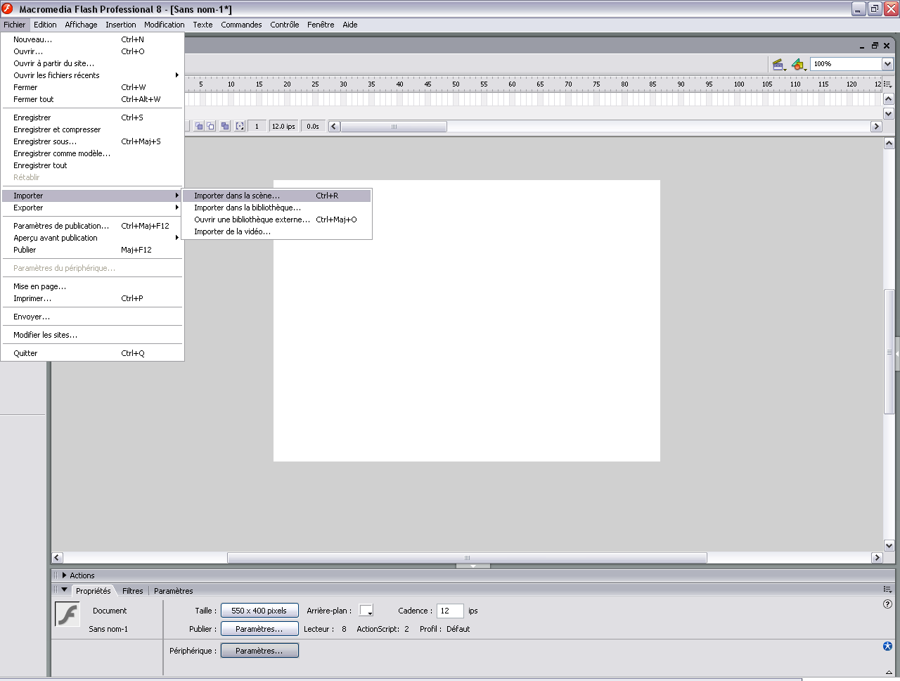Alors, tout d'abord, il vous faut Macromedia Flash. Il est disponible en licence 30 jours ici. Inscrivez-vous, confirmez par mail votre inscription, téléchargez-le, installez-le, ouvrez-le.