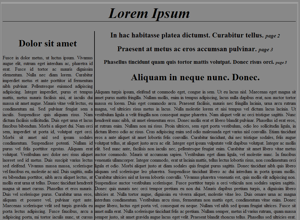 <h3>Phasellus tincidunt quam quis tortor mattis volutpat. Donec risus orci. <span>page 5</span></h3>