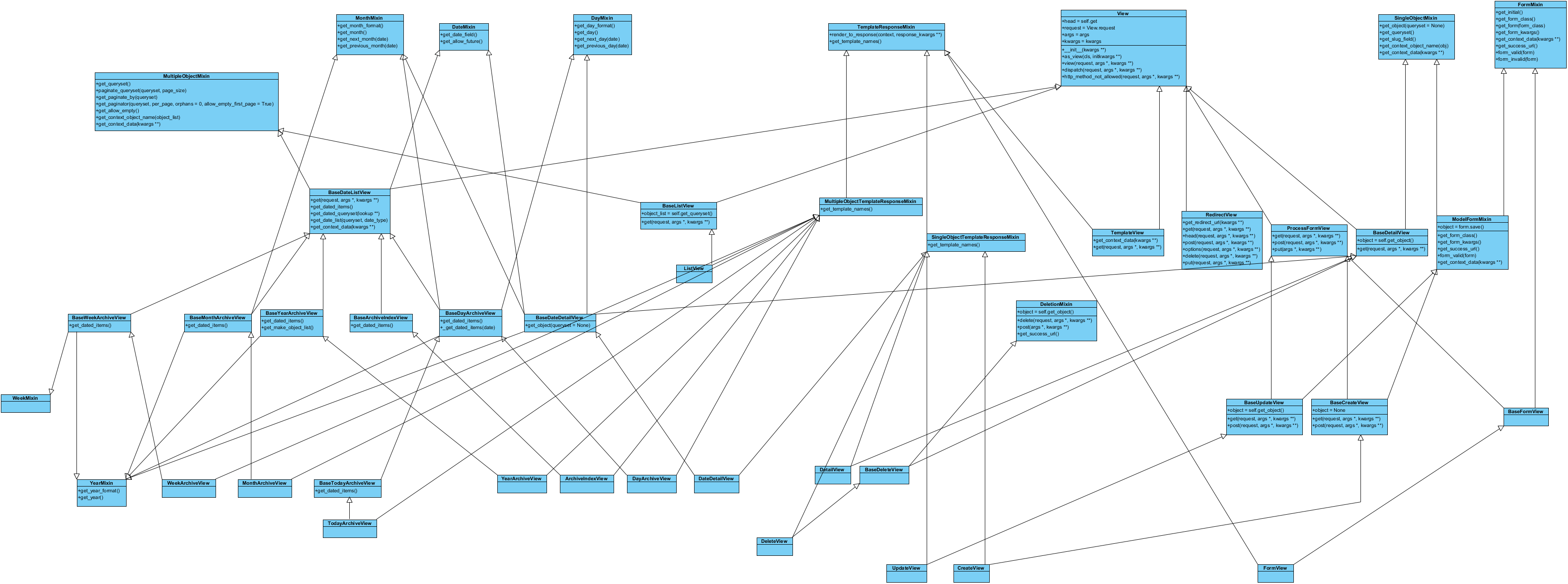 Enfin, une vue est une simple fonction, qui prend comme paramètres des informations sur la requête (s'il s'agit d'une requête GET ou POST par exemple), et les paramètres qui ont été donnés dans l'URL. Par exemple, si l'identifiant ou le nom d'un article du blog a été donné dans l'URL crepes-bretonnes.com/blog/faire-de-bonnes-crepes, la vue récupérera faire-de-bonnes-crepes comme titre et cherchera dans la base de données l'article correspondant à afficher. Suite à quoi la vue générera le template avec le bon article et le renverra à l'utilisateur.