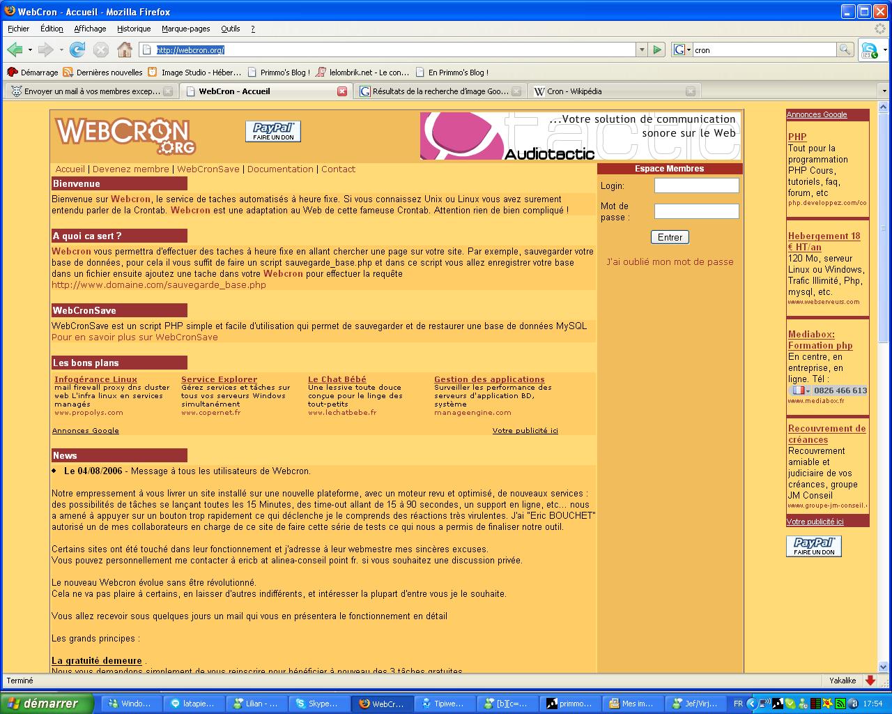 Eh oui ! Il ne manquait que lui pour conclure notre projet. Alors tout d'abord, voici l'adresse du site : Webcron.org.