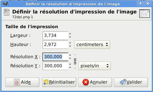 Passage de 72 dpi à 300 dpi dans The GIMP.