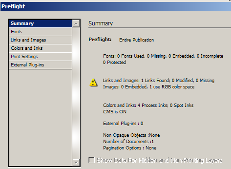 La première chose à vérifier est que tous vos médias sont en CMJN et 300 dpi comme nous l'avons vu auparavant. Si vous avez suivi mes conseils, ça devrait être bon, mais ça ne coûte rien de vérifier.