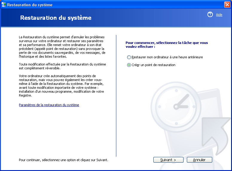 Il s'agit d'un outil intégré à Windows, permettant de revenir en arrière à la suite d'un gros problème sur le système.