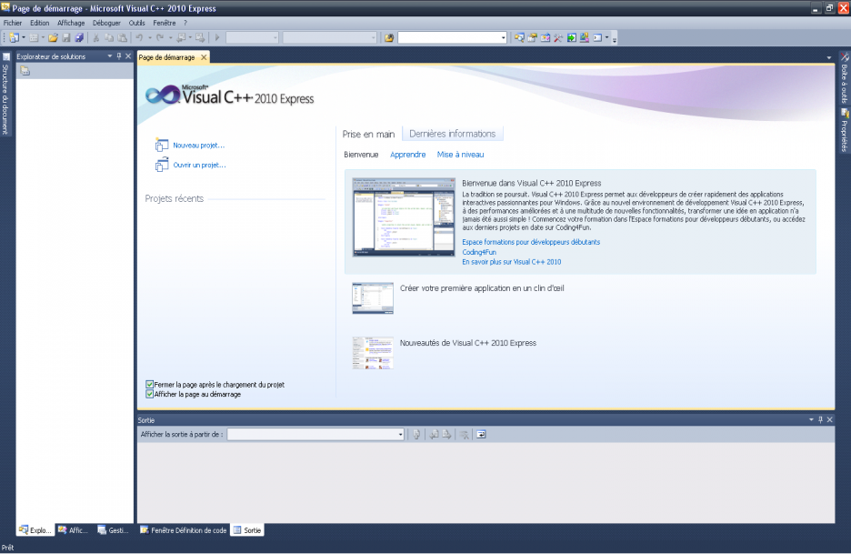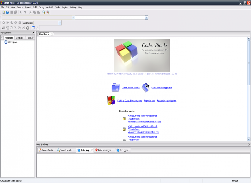Pour l’installation, laissez-vous guider, elle est très simple. Une fois l’installation terminée, en lançant Code::Blocks, vous devriez obtenir ceci :