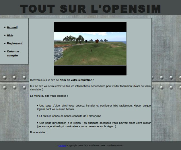Malheureusement, il n’est pas encore possible de recourir aux navigateurs web communs (comme Firefox, Internet Explorer, Opera, Netscape, etc.) pour visiter l’OpenSim. Mais heureusement, il existe plusieurs viewers OpenSim faciles à installer aussi bien pour Linux que pour Mac ou Windows. :) Par exemple, on peut citer le viewerHippo, Meerkat ou le viewer de SecondLife.