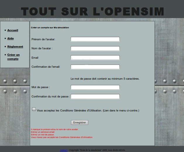 Vous allez entrer quelques informations dans le formulaire proposé sur la page d’enregistrement à OsGrid. Je pense que vous devriez vous en sortir, mais je vais tout de même détailler cette partie.