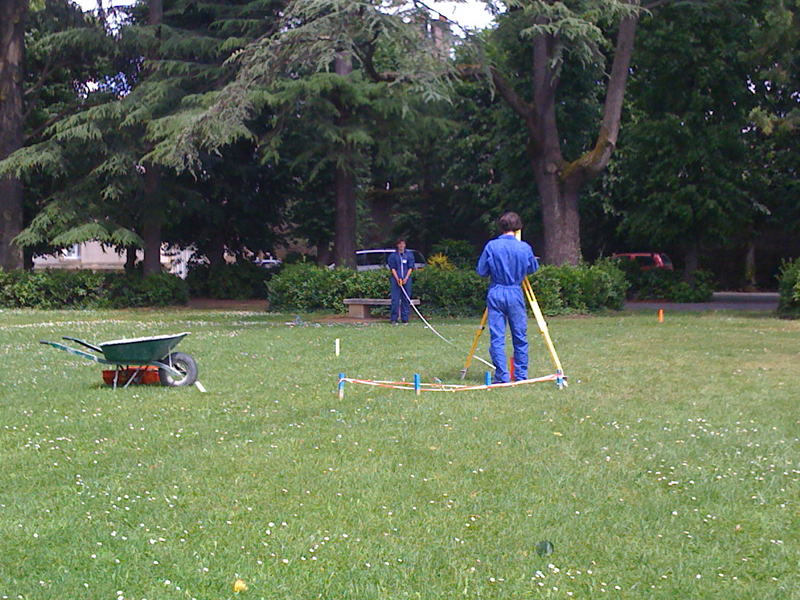 Sur le terrain, le travail consiste à prendre des mesures à l'aide de différents outils allant du simple mètre ruban à l'utilisation de machines de mesure à assistance laser (voir photo). ;)