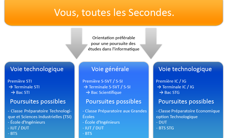 Je vous souhaite la bienvenue sur mon premier article concernant l'orientation pour la Seconde générale en France. Celui-ci a pour cible les élèves souhaitant réaliser un Bac général ou technologique pour déboucher principalement sur l'informatique, en raison de la dominante du site.