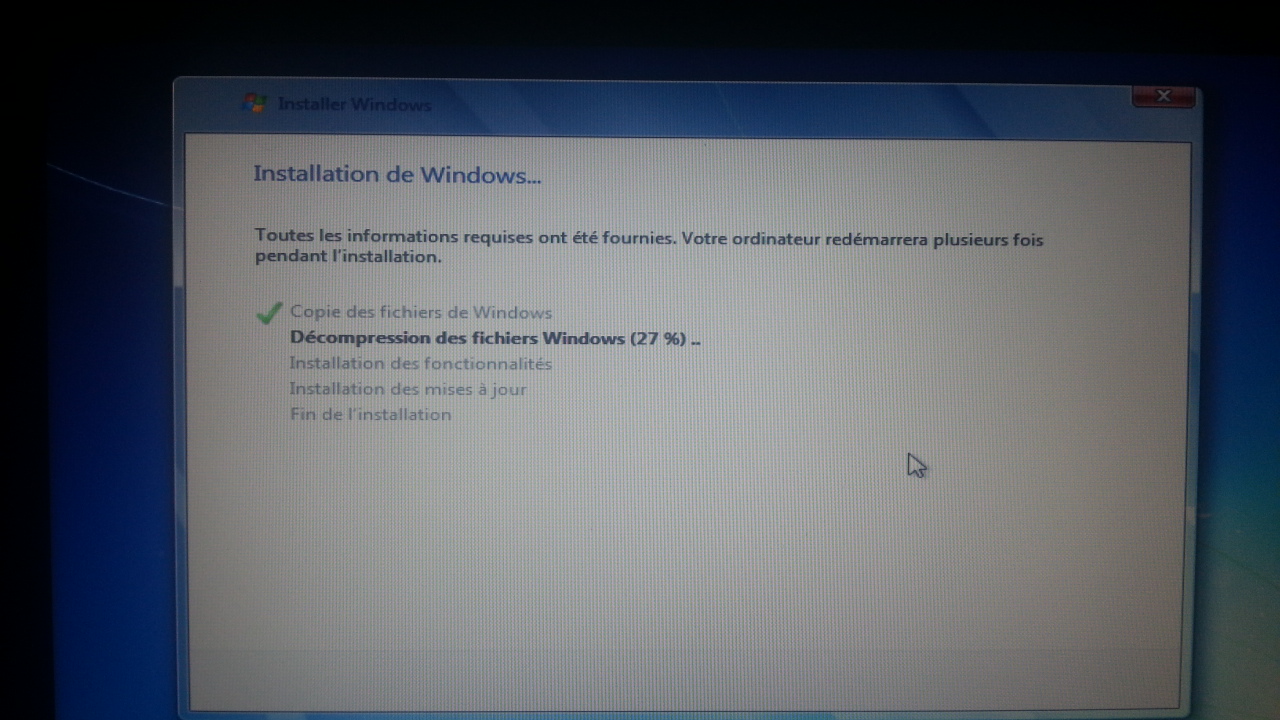 Là votre ordinateur redémarrera plusieurs fois tout seul et bootera ou non sur le DVD selon l'étape de l'installation : à ce moment, vous n'avez rien à faire sinon attendre la fin de l'installation jusqu'à la configuration de votre compte.