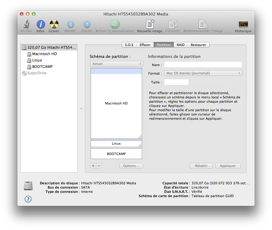 Ce tutoriel est construit de sorte que vous puissiez créer un dual boot OS X/Ubuntu uniquement. Je préciserai à chaque étape ce qui est inutile de faire pour le cas d'un dual boot OS X/Ubuntu ou OS X/Windows. ;)