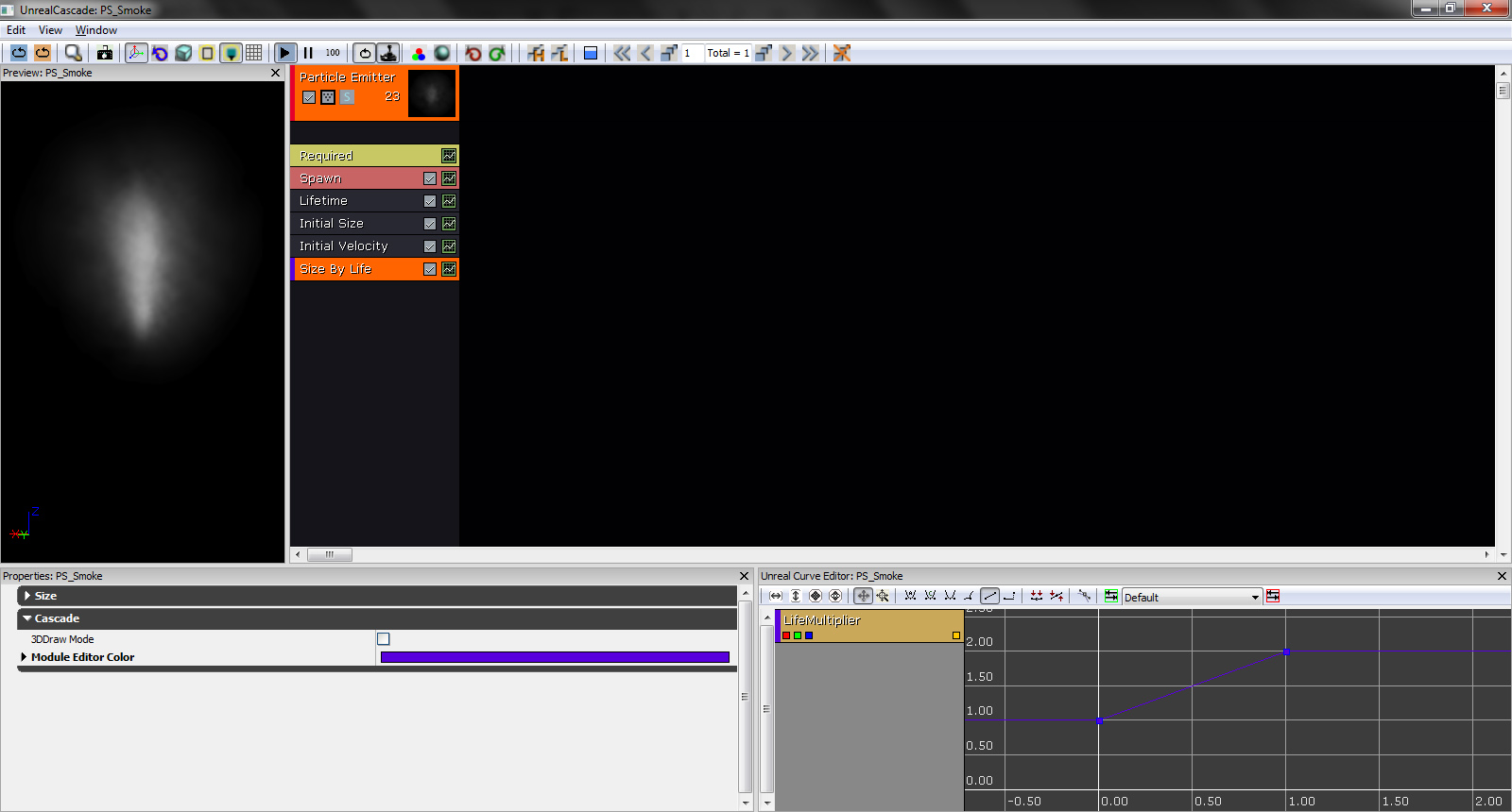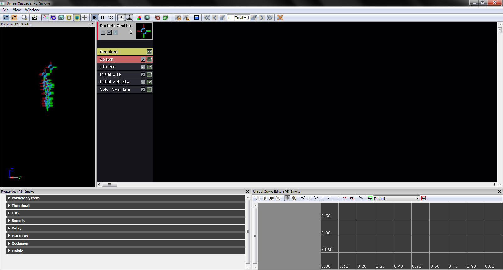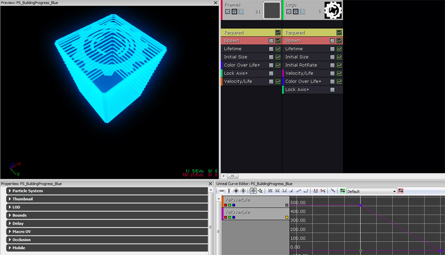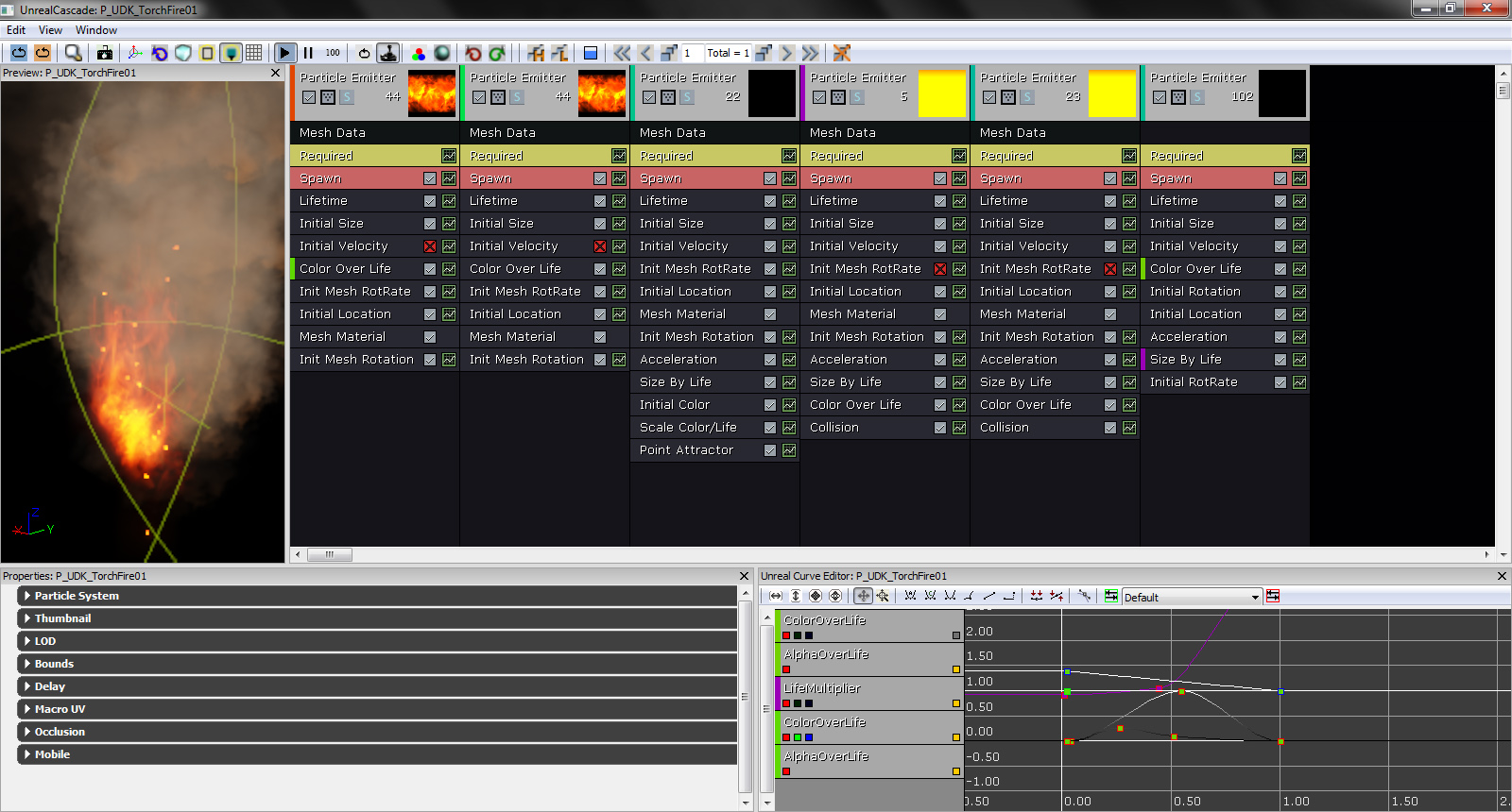 Un système de particules dans UDK : même pour des effets avancés, la création graphique ne requiert pas de programmation
