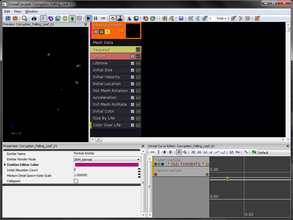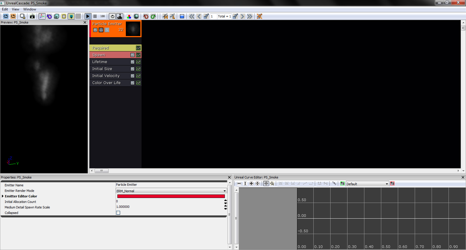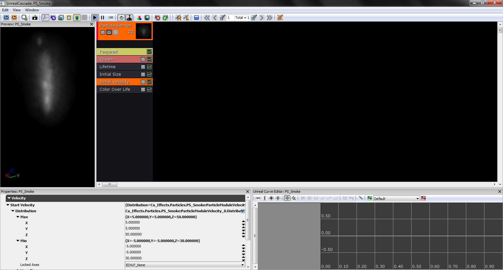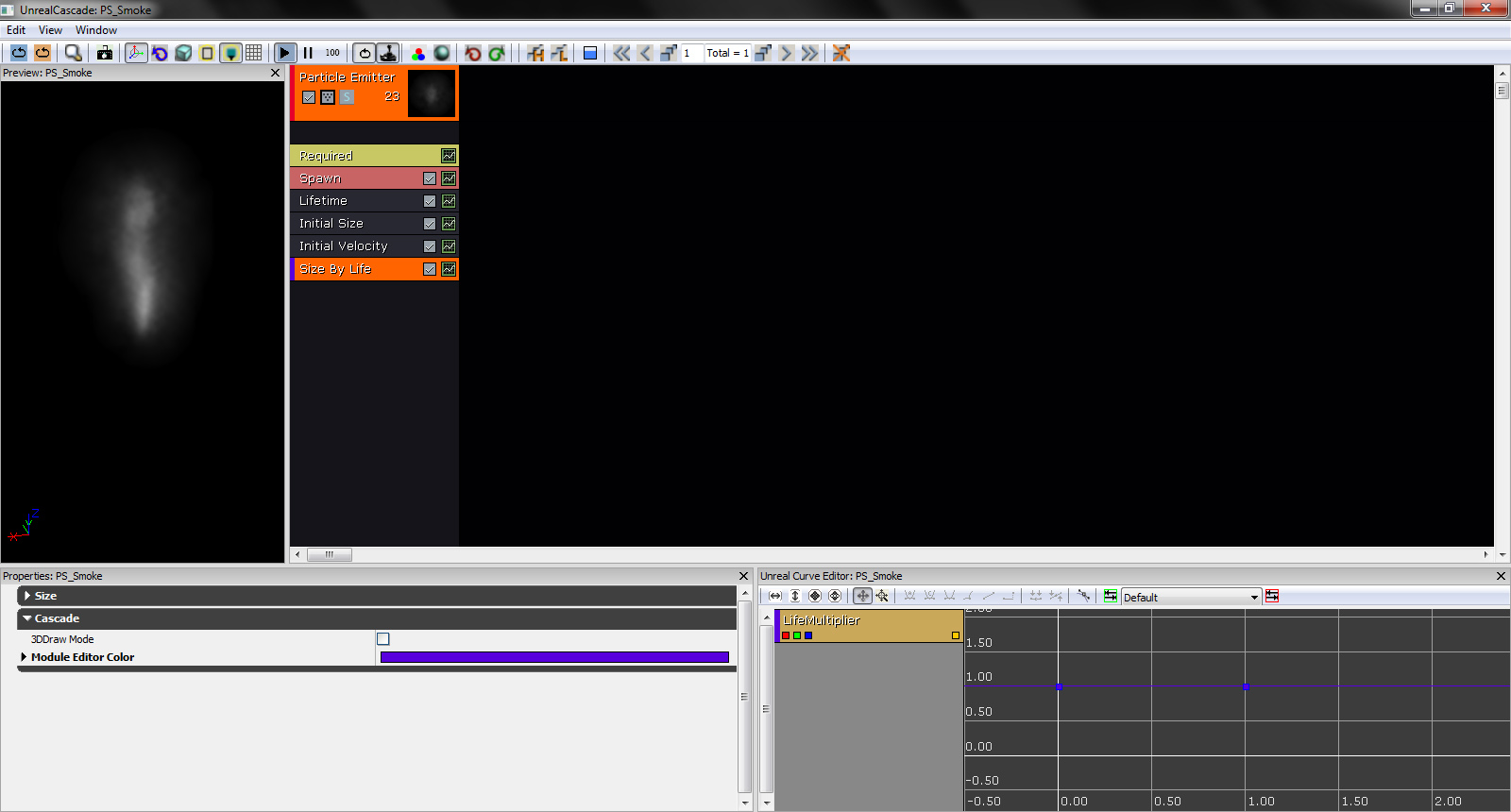 Un système de particules dans UDK : même pour des effets avancés, la création graphique ne requiert pas de programmation