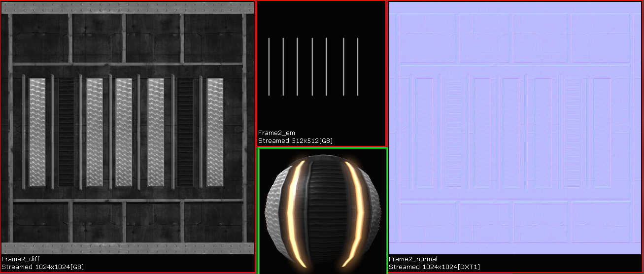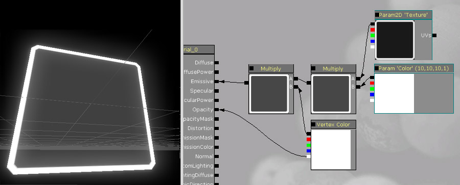 Le Material employé pour les bordures lumineuses. Le logo en est une copie avec une texture différente, et tourne sur lui-même