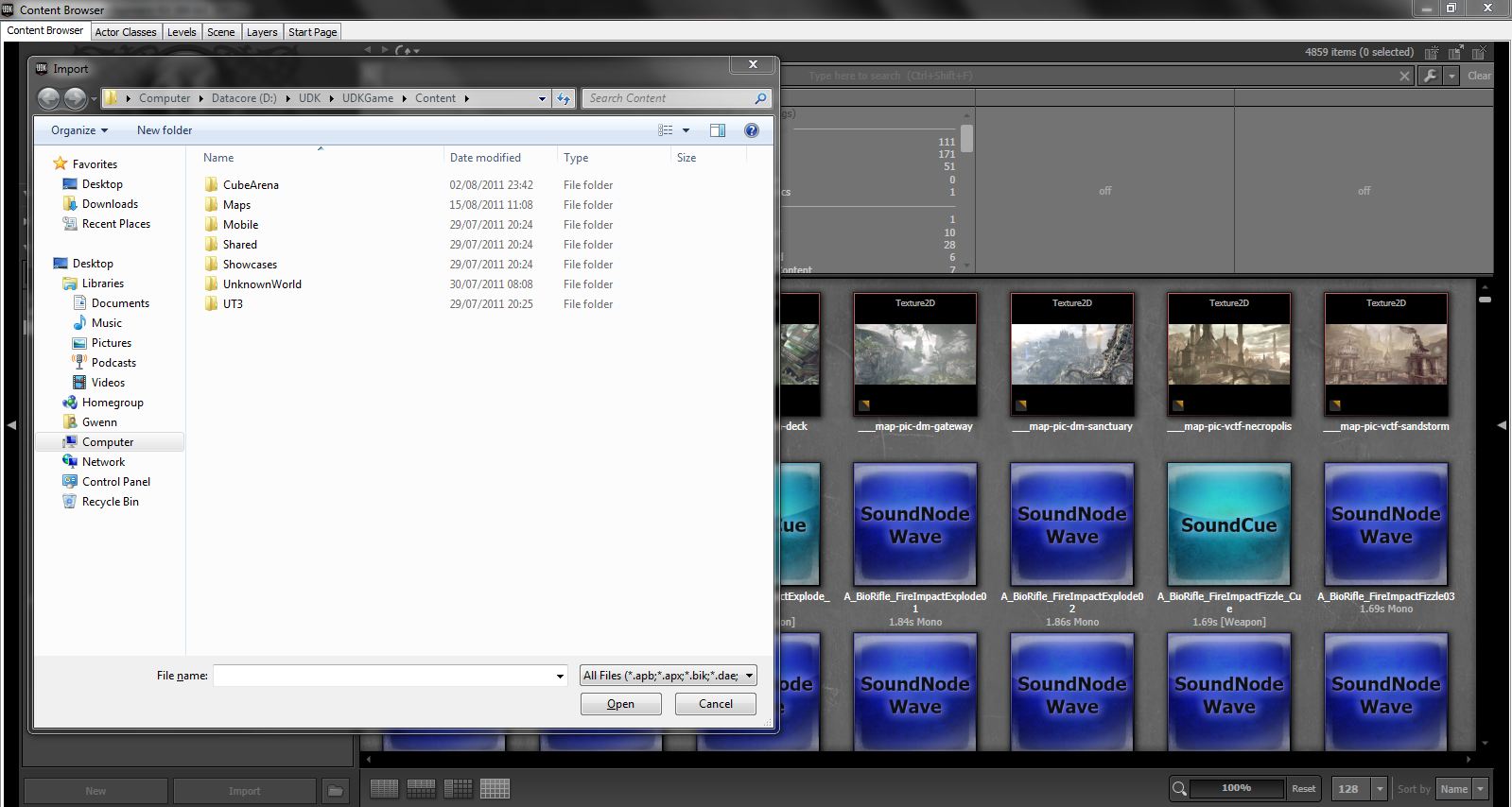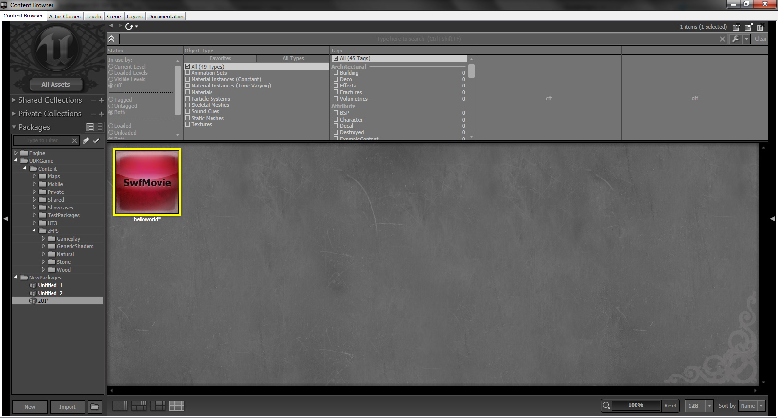 Une fois la compilation effectuée, vous disposez d'un fichier SRT qui correspond à votre arbre prêt à être utilisé dans UDK ! C'est le moment de lancer Unreal Editor. L'importation va se dérouler exactement comme pour n'importe quel autre contenu : dans le Content Browser, importez le fichier SRT ainsi que les textures générées par la compilation.