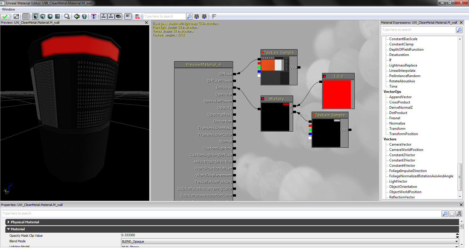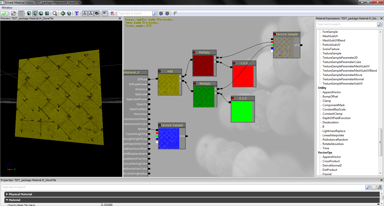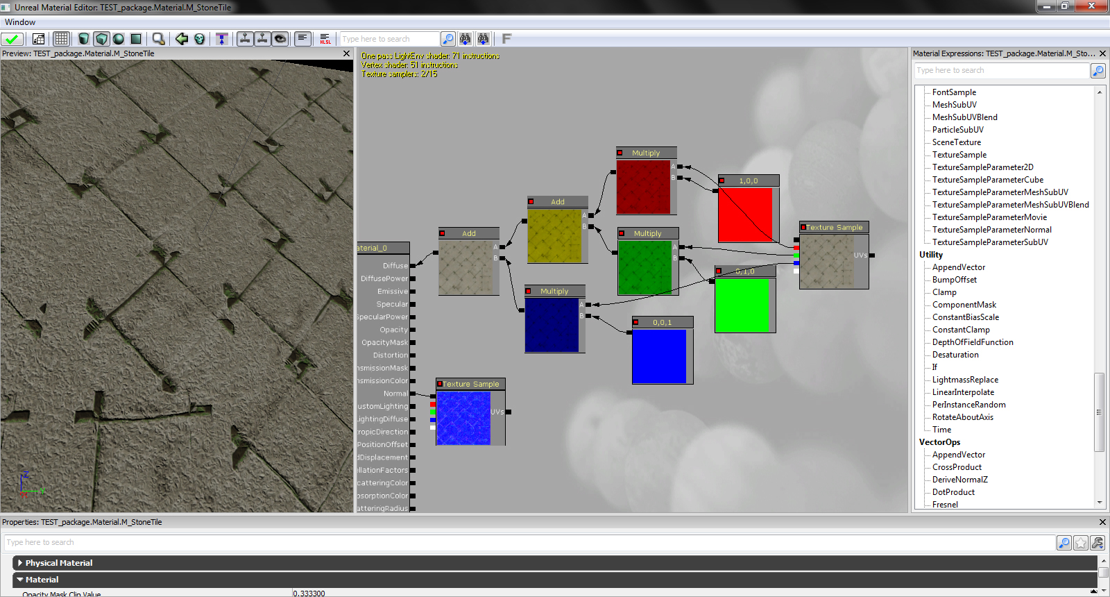 Une fois la manipulation effectuée, vous êtes en possession d'une ressource complètement classique : un model 3D au format SRT, des textures. Le cours vous a déjà appris à manipuler les Material, inutile d'y revenir maintenant, n'est-ce pas ? :p Vous pouvez donc créer un Material pour chaque section (tronc, branches...) et ensuite utiliser votre SpeedTree dans vos niveaux comme si c'était un StaticMesh. Cette manipulation est longue, mais a priori, vous n'aurez pas besoin de dix modèles d'arbre dans chaque niveau !