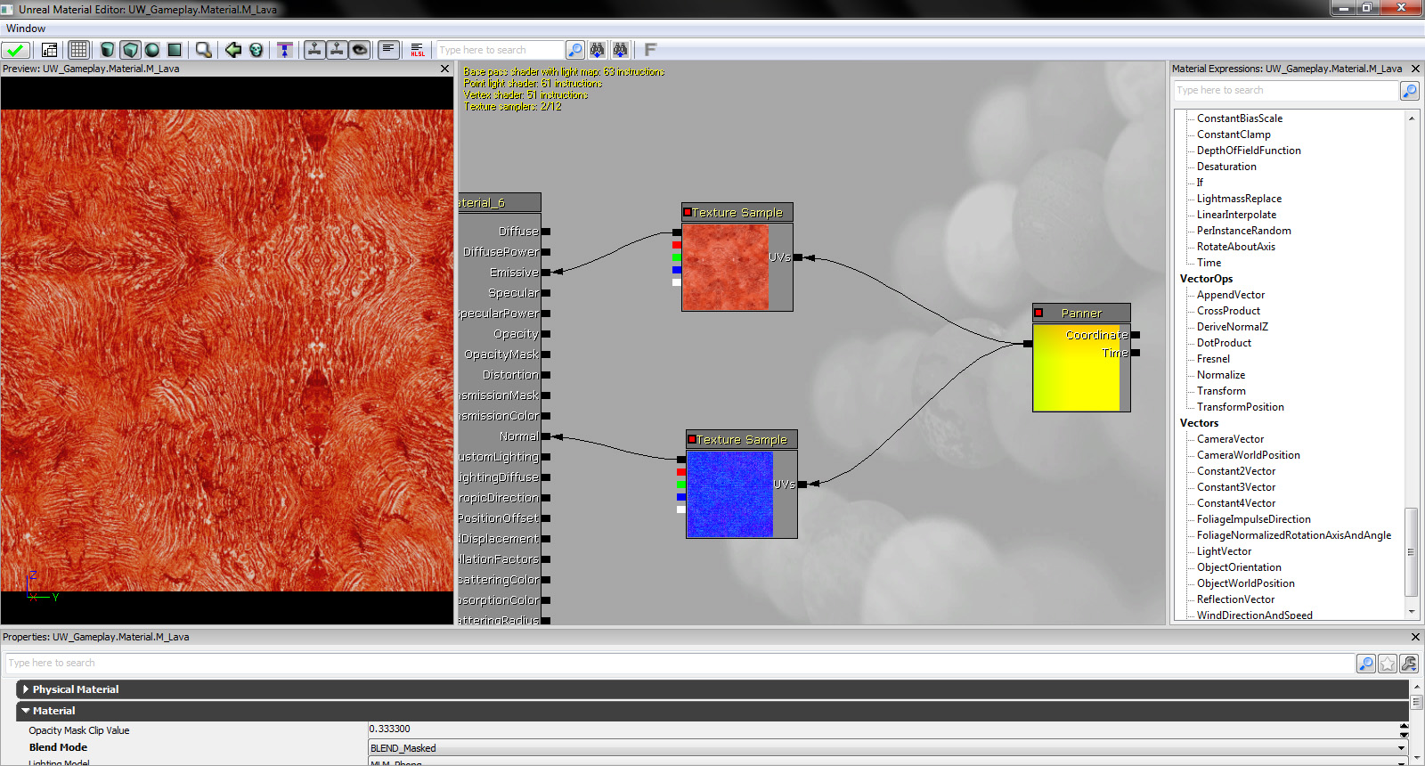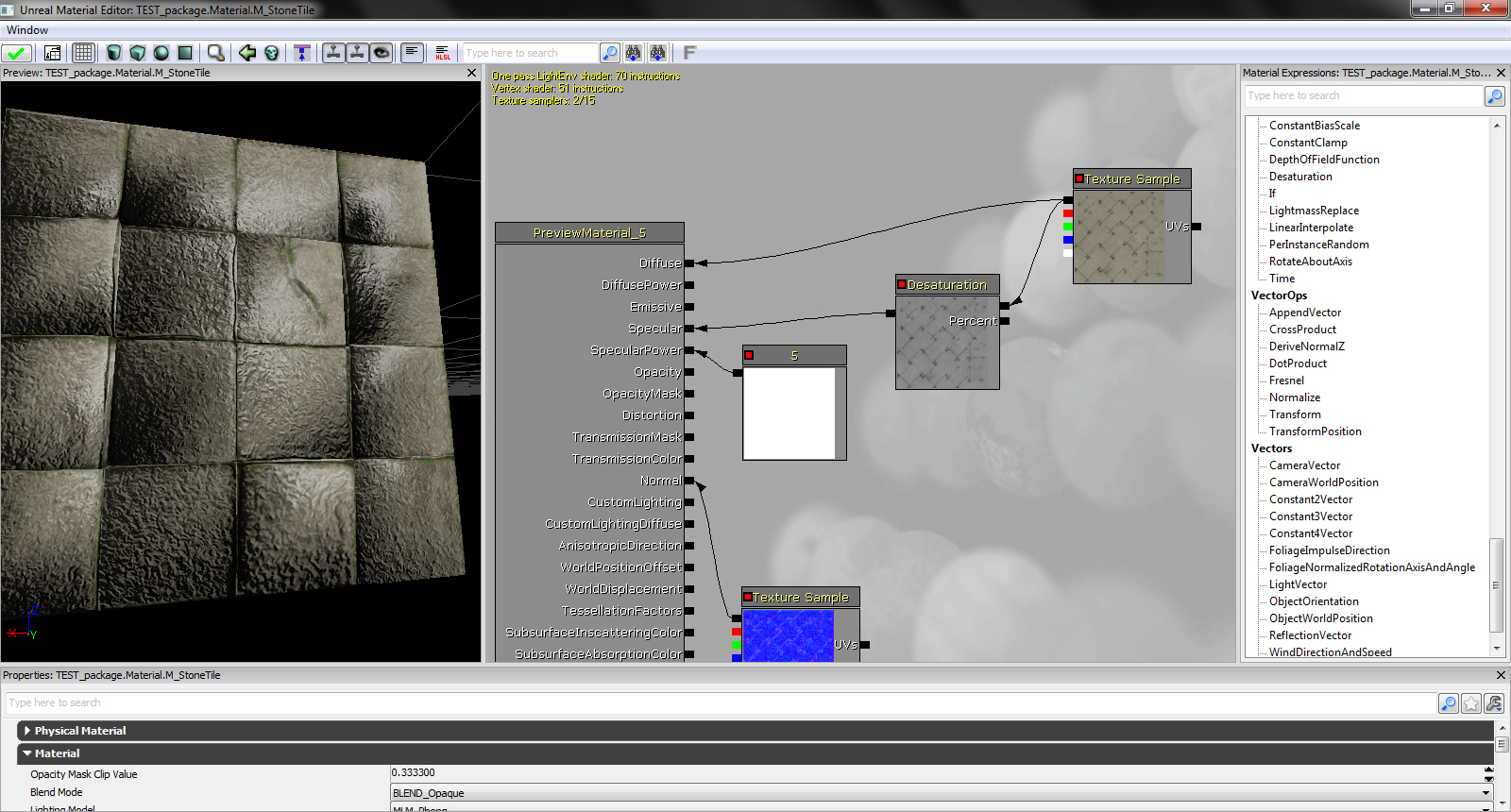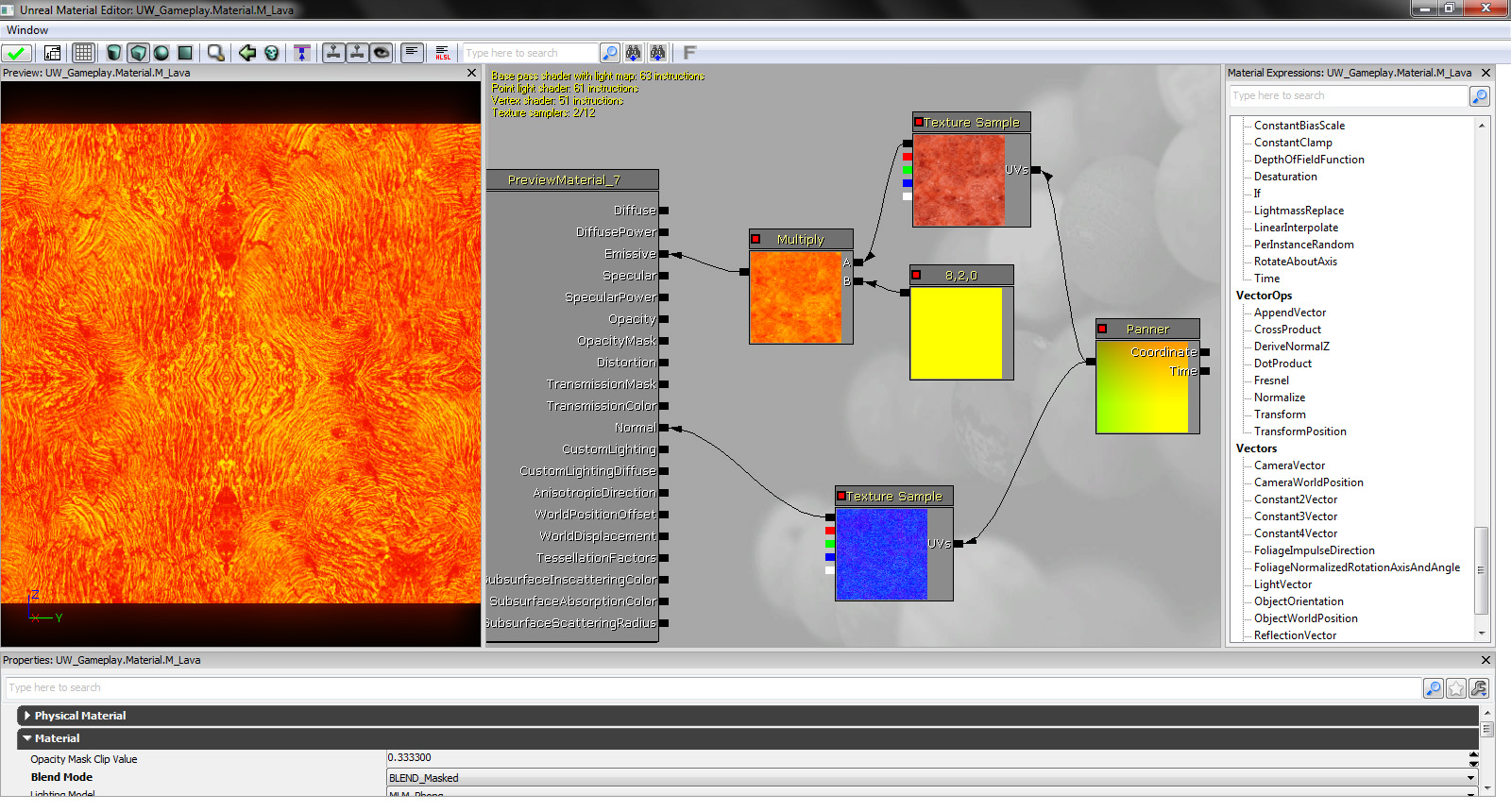 Une fois la manipulation effectuée, vous êtes en possession d'une ressource complètement classique : un model 3D au format SRT, des textures. Le cours vous a déjà appris à manipuler les Material, inutile d'y revenir maintenant, n'est-ce pas ? :p Vous pouvez donc créer un Material pour chaque section (tronc, branches...) et ensuite utiliser votre SpeedTree dans vos niveaux comme si c'était un StaticMesh. Cette manipulation est longue, mais a priori, vous n'aurez pas besoin de dix modèles d'arbre dans chaque niveau !