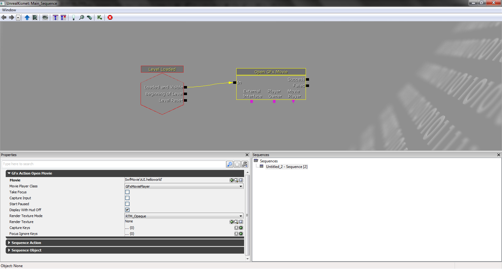 Vous l'aurez compris, encore une fois l'éditeur de niveaux d'UDK se place au centre du développement. Pour créer une cinématique, le plus simple est de jouer la vidéo directement au début d'un niveau. ;)