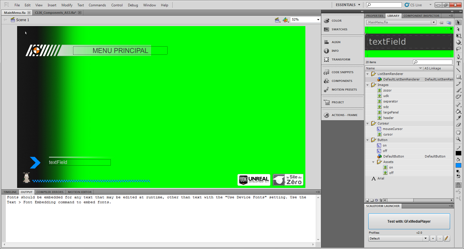 Interfaces graphiques avancées avec Scaleform : menus en 3D, vidéos, effets visuels avec Flash... Scaleform est employé par la majorité des jeux vidéo à gros budget d'aujourd'hui !