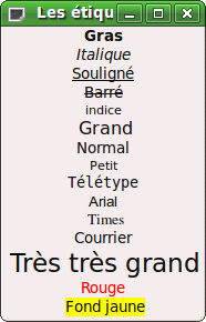 Puis, on crée les chaînes de caractères qui s'afficheront dans un gtk.Label() :