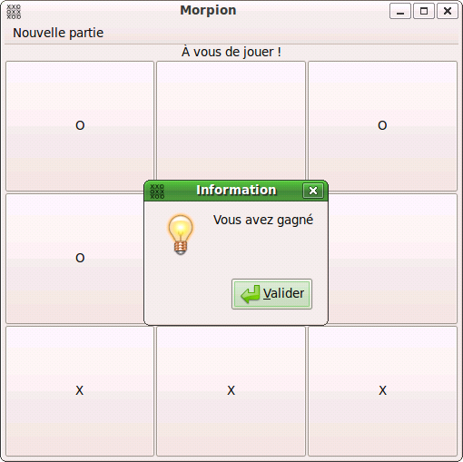 Voilà terminé la deuxième partie. Vous y avez vu la majorité des widgets existants et fait vos premiers programmes. Soyez fier de vous. Je vous recommande de vous pratiquer, de pratiquer et de pratiquer (me suis-je bien fait comprendre ;) ?). Si vous avez des idées de programmes, essayez de les faire (si vous avez besoin d'aide, le forum est là pour ça). Vous pouvez maintenant faire toutes sortes de programmes avec ce que vous avez vu. Mais, je ne le répeterai jamais assez souvent, allez regarder la documentation.